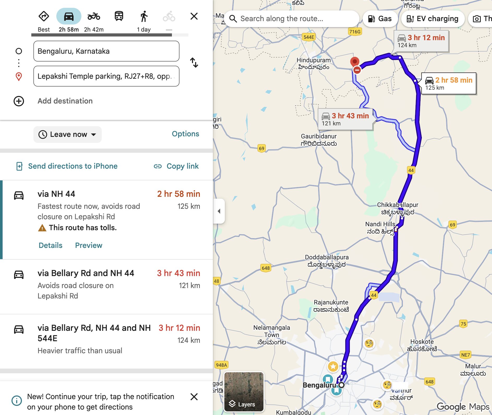1. Short drive: 120 km drive either via Hoskote or Budigere behind the airport or via Hebbal and Devanahalli crossing the airport